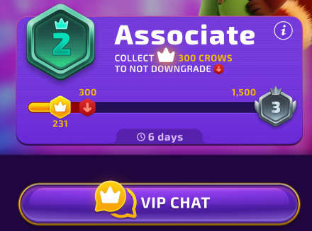The VIP Timer begins every time your tier changes, whether you level up or get downgraded. Your goal is to earn enough Crowns before the timer ends to keep your Tier or level up.